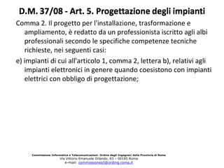 GU UID A A AL DM M 37 7/0 8 LETTERA A: Impianti elettrici, impianti di protezione contro scariche atmosferiche, impianti di autoproduzione di energia elettrica e impianti di automazione porte, cancelli e barriere automatiche4 ‐ impianti di produzione, trasformazione, trasporto, distribuzione, utilizzazione dell'energia
